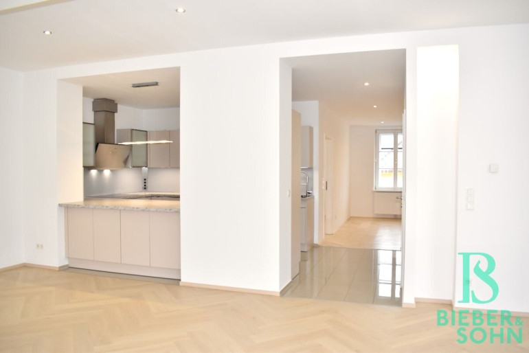 Eine qualitativ hochwertige EWE Einbauküche Mod. Nuova in der angesagten Farbe sand-matt, neuwertige Kücheneinbaugeräte von BOSCH (Kühl- Gefrierkombination, Induktionsherd, Backrohr, Mikrowellenherd, Dunstabzug, höher gestellter Geschirrspüler), exklusiv von der Tischlerei Rauchenzauner ausgestattetes Bad mit Wanne & Dusche & Doppelwaschbecken, sowie Waschmaschinen- und Trockneranschluss, neues und restauriertes Fischgrätparkett in den Wohn- und Schlafräumen, schönes Feinsteinzeug im Vorzimmer, sowie in den Sanitärräumen, eine Kombination von vorgesetzten Kastenfenstern und moderne doppelglasige Isolier-Kunststofffenster von KAPO, edle französische Balkontüren im Wohnzimmer von ROTO, Insektengitter, Innenrollos, Gardinenschienen mit Flächenvorhänge, Türen aus Holz, Fußbodenheizung mit Wandthermostat, beziehungsweise teilweise Heizkörper mit Thermostat, hydraulischer Aufzug, Kabel TV & Internet Anschlüsse im Wohn- und Schlafzimmer, Spot-Lichter in fast der gesamten Wohnung, Gegensprechanlage und ein Telefonanschluss komplettieren die exklusive Ausstattung dieser repräsentativen Wohnung.