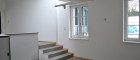 Über den Eingang kommt man in den ersten Büroteil, der mit praktischen Schrankwänden ausgestattet ist und drei Stufen führen in den unteren Bereich, der Platz für Schreibtische bietet und weiter führend in einen ca. 31m² großen Büroraum.