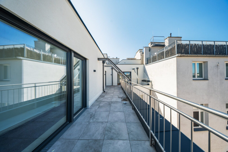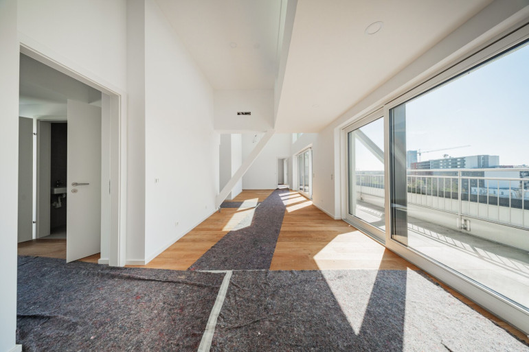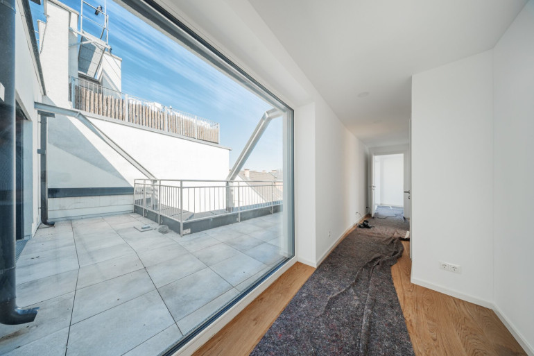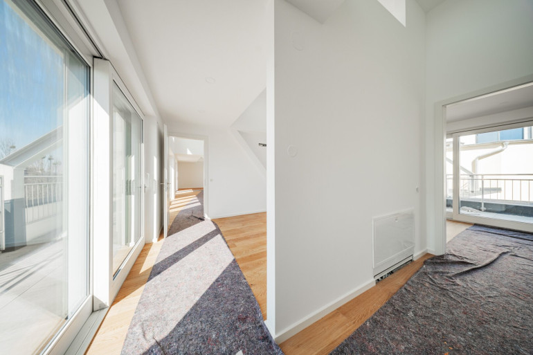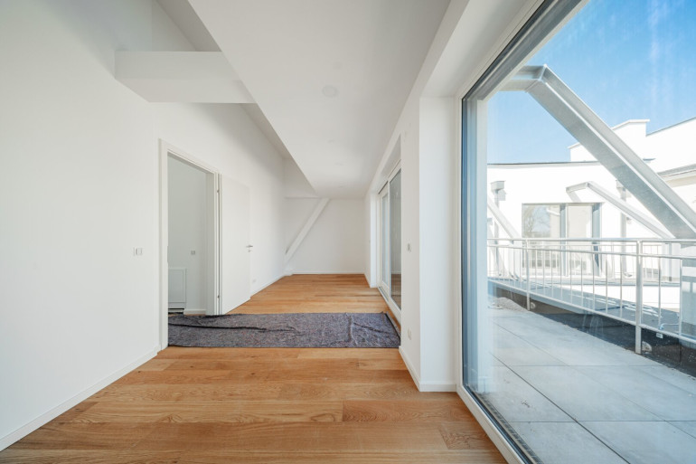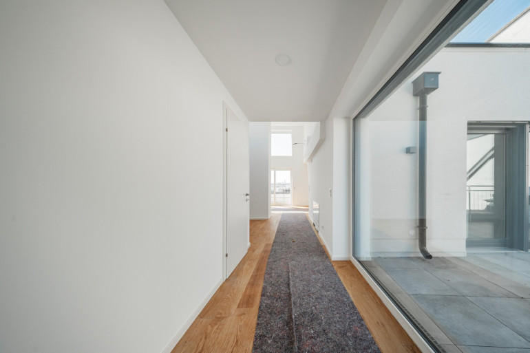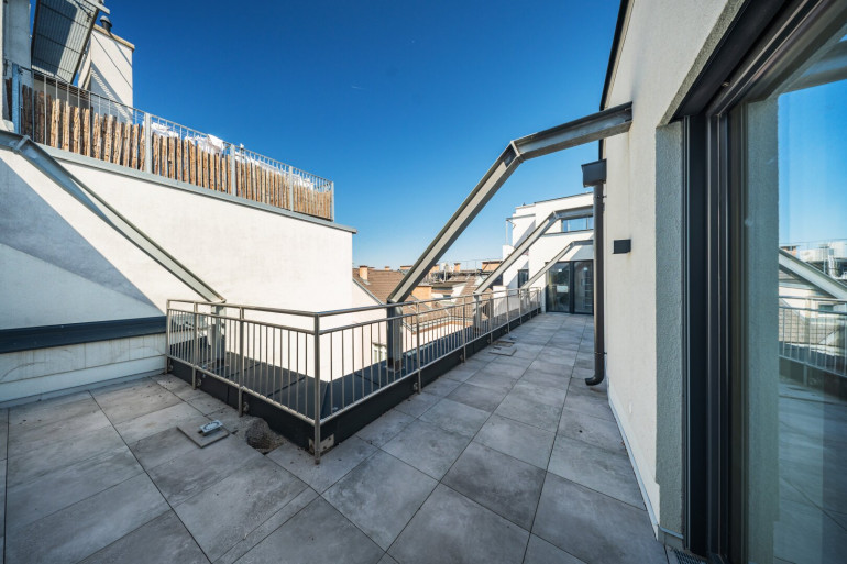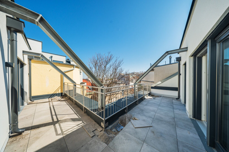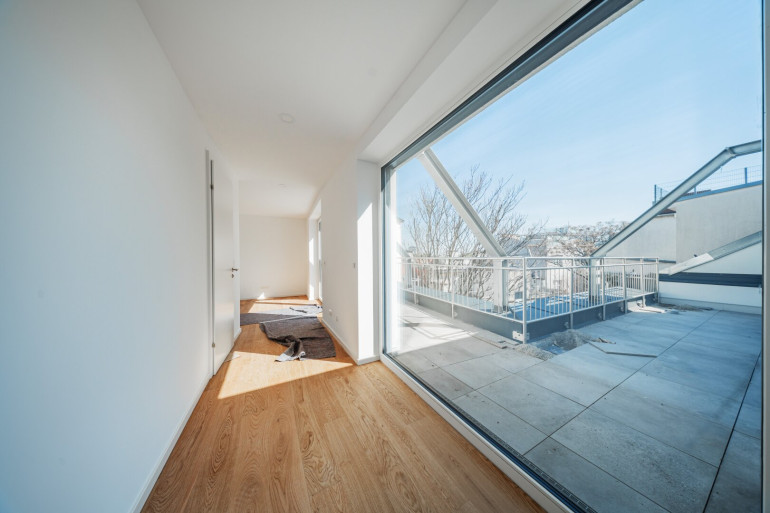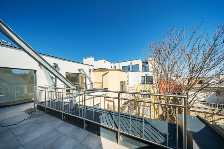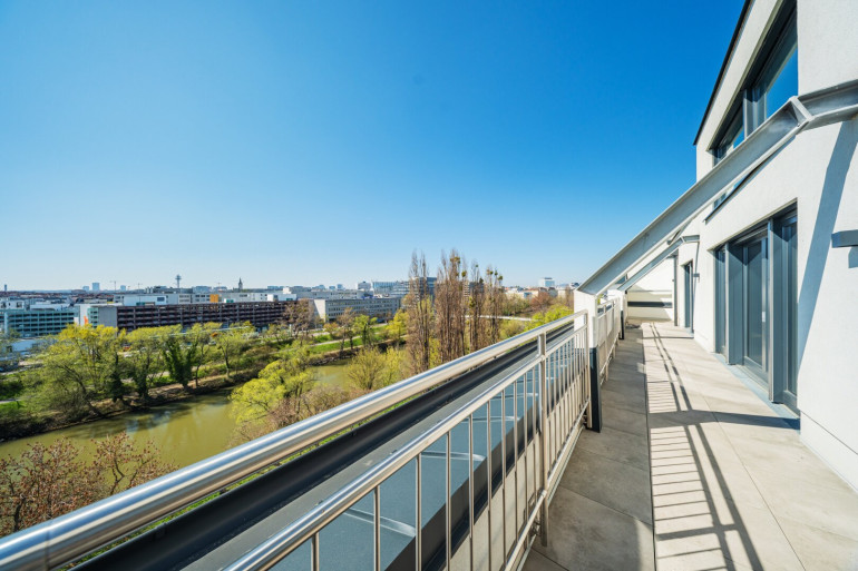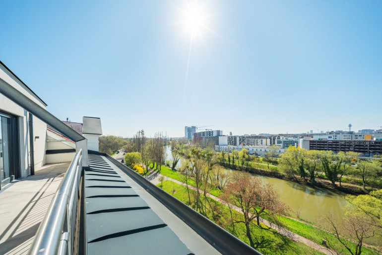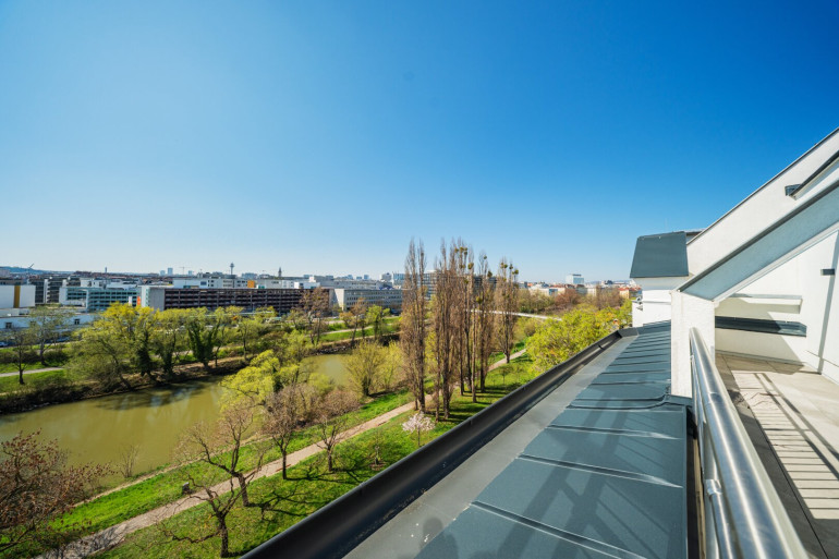 Ein besonderes Highlight: Fünf traumhafte Terrassen, darunter eine südseitige Hauptterrasse, bieten spektakuläre Ausblicke auf die Wiener Skyline sowie viel Platz zum Entspannen und Genießen. Die umliegende Begrünung schafft eine ruhige, private Atmosphäre mitten in der Stadt.
