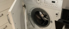 - Küche mit Elektrogeräten: Geschirrspüler, Backofen/Herd mit Ceranfeld, Kühlschrank und integrierte Waschmaschine