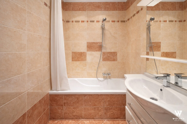 Die Wohnung überzeugt durch eine moderne Einbauküche sowie ein stilvolles Badezimmer mit Badewanne, das zum Entspannen einlädt. Für zusätzliche Sicherheit und Komfort sorgen eine hochwertige Sicherheitstür mit Stahlbolzen sowie eine Gegensprechanlage mit Kamera. Der begrünte Innenhof steht zur Nutzung zur Verfügung, zudem kann die Wohnung auf Wunsch möbliert übernommen werden – das Inventar ganz oder teilweise.