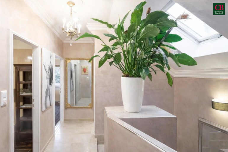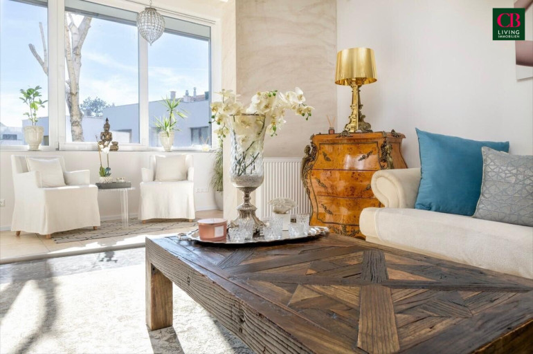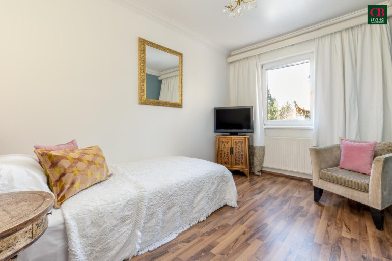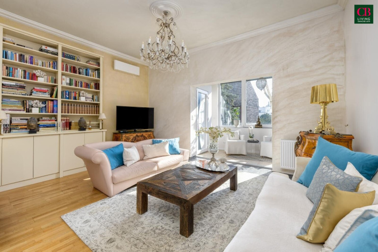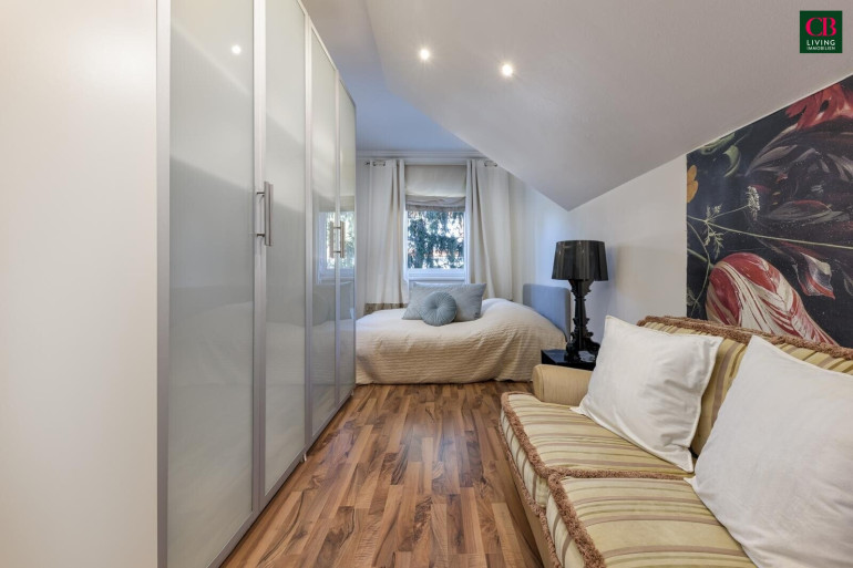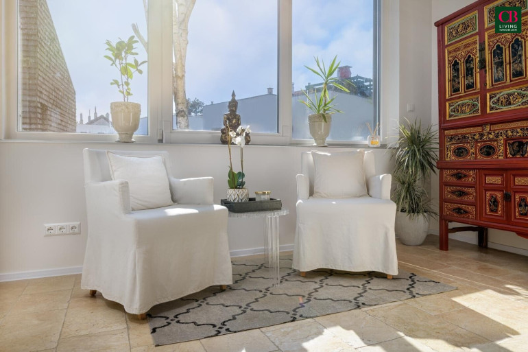 Ein Wintergarten erweitert den Wohnraum auf elegante Weise und schafft eine helle Verbindung zwischen Innen- und Außenbereich. Ergänzt wird dies durch die große Terrasse direkt vom Hauptschlafzimmer, die einen privaten Rückzugsort mit viel Ruhe und Atmosphäre bietet.