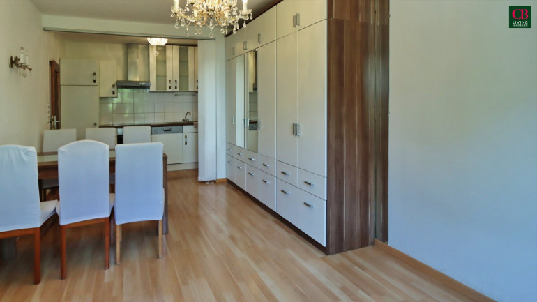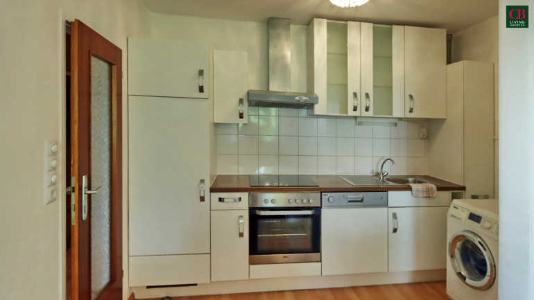 Die lichtdurchflutete Wohnung verfügt über eine neuwertige Küche mit elegantem Essplatz.