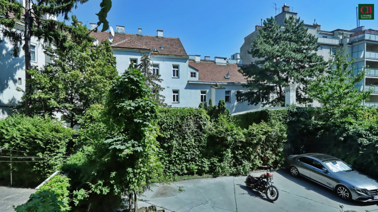 Der üppig bepflanzte Innenhof bietet einen unverbaubaren Grünblick mit Vogelgezwitscher und einer ungewöhnlichen Idylle für diese Ecke von Floridsdorf.