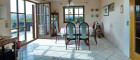 - Wohnsalon mit Kamin, Essbereich und Ausgang auf die Süd- Terrasse