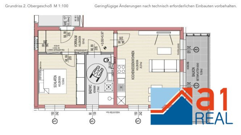 Die Fußbodenheizung bietet angenehmen Wohnkomfort und unterstreicht den zeitgemäßen Standard der Wohnung. Das großzügige Badezimmer mit WC ist modern gestaltet und bietet ausreichend Platz und Komfort für den Alltag.