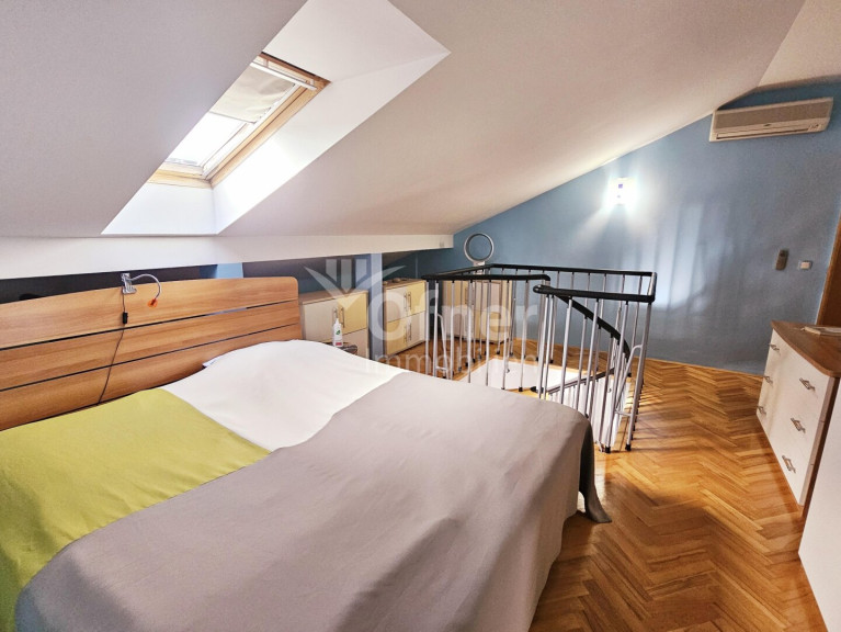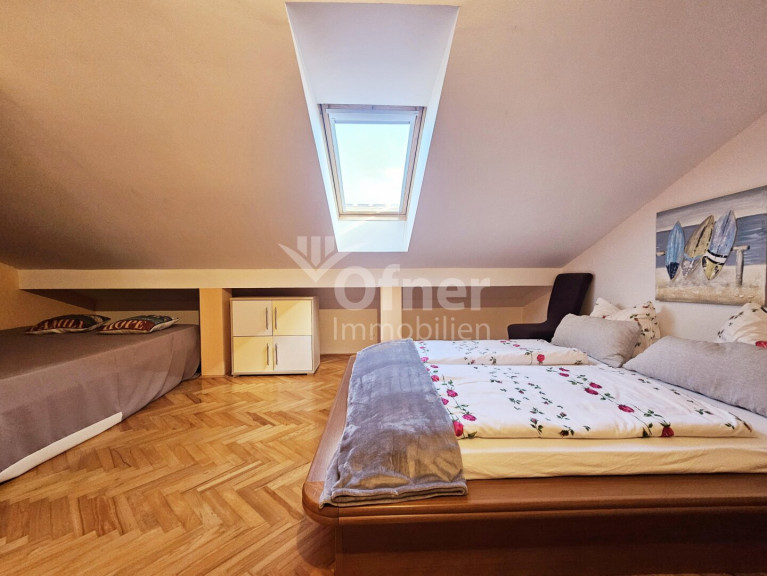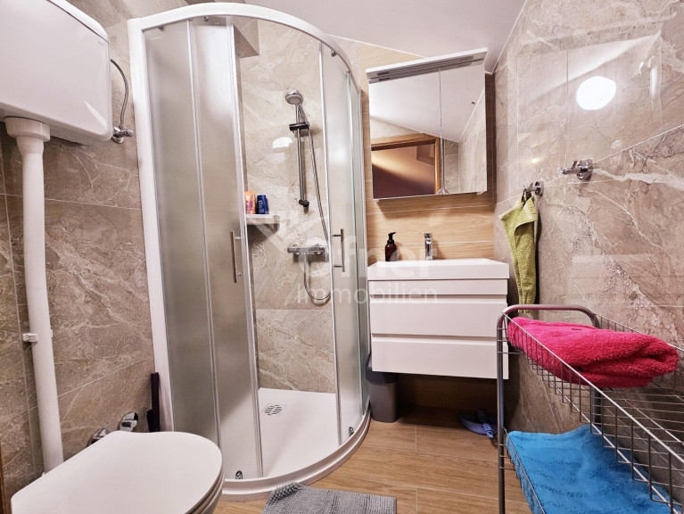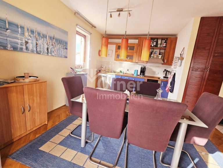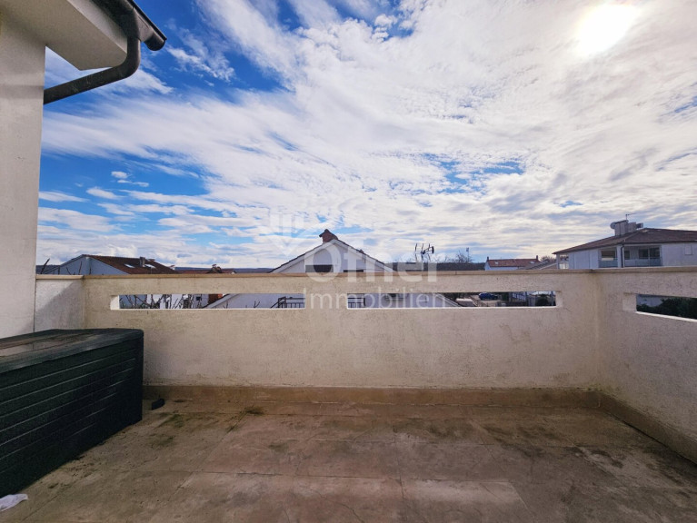 Zum Verkauf steht eine geräumige und funktionale Wohnung in einer ruhigen Gegend von Malinska. Die Wohnung befindet sich im zweiten Stock sowie im Dachgeschoss eines Mehrfamilienhauses und hat eine Gesamtfläche von 108 m². Die untere Etage besteht aus einem Eingangsbereich, einem Badezimmer, einer Küche mit Essbereich und einem offenen Wohnbereich. Vom Wohnzimmer aus gelangt man auf die Terrasse mit Meerblick. Im Dachgeschoss, das über eine Wendeltreppe erreichbar ist, befinden sich drei Schlafzimmer und ein weiteres Badezimmer.