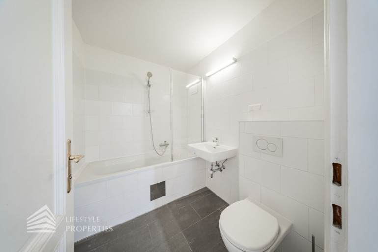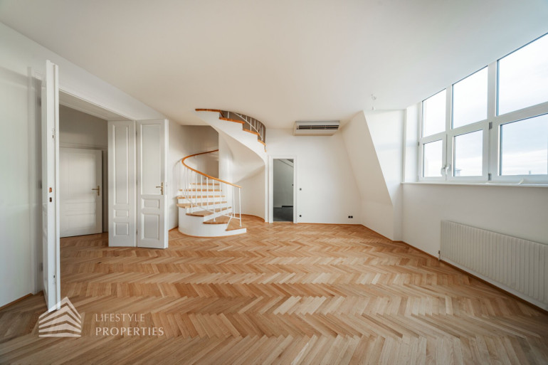 Die Wohnung befindet sich in einem prachtvollen im Jahre 1909 gebauten Altbaus, liegt im 3. Stock und ist bequem über einen Lift erreichbar. Sie verfügt über eine Größe von ca. 112 m² und gliedert sich in zwei Vorräume, einen großen Wohnraum, ein Schlafzimmer, eine Küche, ein Bad und ein separates WC.