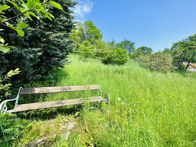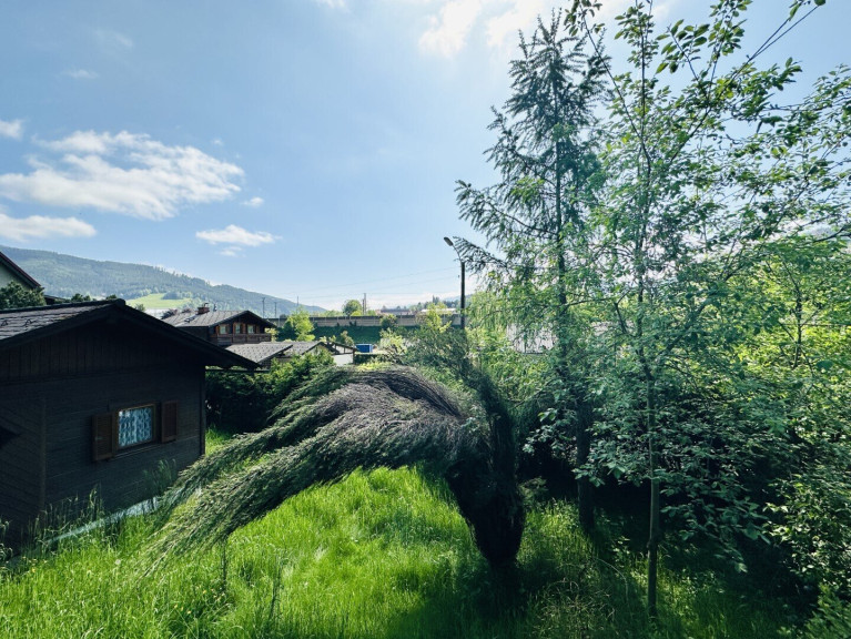 Am Grundstück selbst findet man einen umfangreichen Baumbestand sowie eine Gartenhütte.