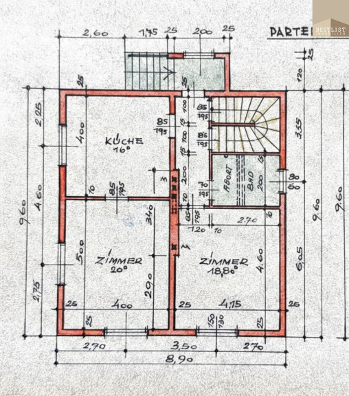 EG Haus: ca. 83 m² (Vorraum, Küche 16 m² plus 2 Zimmer, 19 m² und 20 m²)