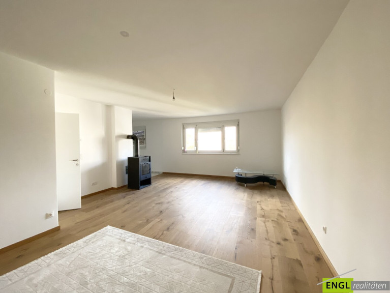 Die Wohnküche - der Küchenteil verfliest - der Wohnbereich mit Parkett ausgestattet - inkl. Schwedenofen.