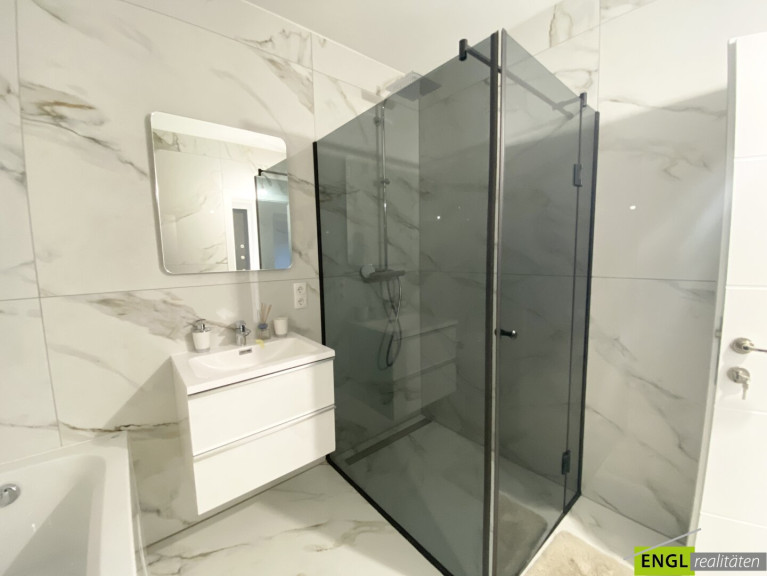 Badezimmer 6,61m2 wurde hochwertig neu eingerichtet im zeitlosen Design und hochwertigen Materialien.