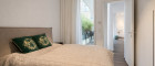 Das Schlafzimmer bietet ausreichend Platz für ein Doppelbett sowie Stauraumlösungen. Auch hier setzt sich die hochwertige Materialwahl konsequent fort.