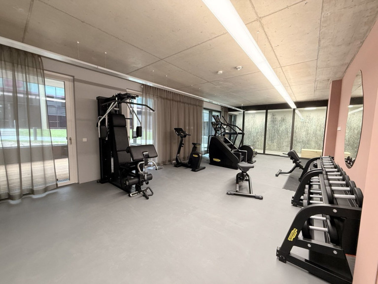 – Fitnessraum sowie Co-Working-Spaces mit flexibler Büromöblierung