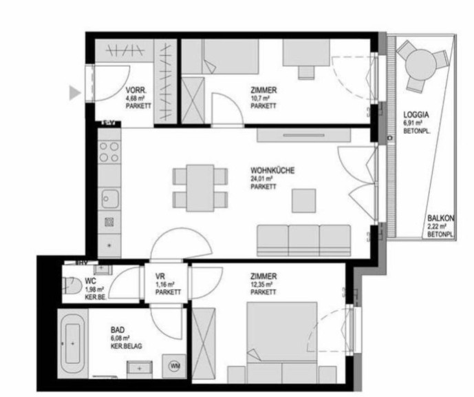 – Großzügige Freiflächen wie Balkon bzw. Terrasse