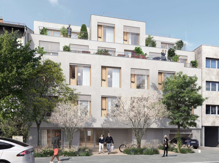 In der SPEISING:70 entsteht ein modernes Wohnprojekt mit zwei Baukörpern in reduzierter, kubistischer Architektur. Zur Straße hin öffnet sich ein Gebäudeteil mit kompakteren Wohneinheiten, deren flächenbündige Fichtenholz-Fenster dem Ensemble ein unverwechselbares Erscheinungsbild verleihen. Einzigartige Markisoletten sorgen für stilvollen Sonnenschutz und setzen gleichzeitig gestalterische Akzente. Die hofseitig ausgerichteten, größeren Wohnungen profitieren von einer ruhigen, westseitigen Lage und besonders großzügigen Außenflächen.