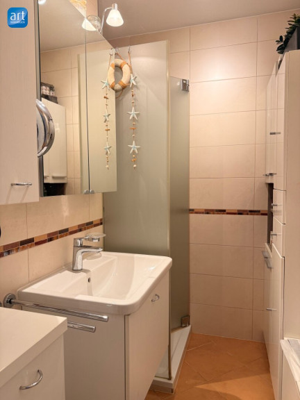 Der durchdachte Grundriss schafft ein angenehmes Wohnambiente, das sowohl für Familien als auch für Paare ideal ist. Die lichtdurchfluteten Räume laden zum Wohlfühlen und Entspannen ein. Die komplett ausgestattete Einbauküche ist nicht neu aber ausgesprochen gepflegt und macht das Kochen zum Vergnügen. Vom Wohnzimmer aus gelangen Sie auf die westlich ausgerichtete Loggia die zusätzlichen Platz im Freien bietet – perfekt für gemütliche Stunden bei Sonnenuntergang.