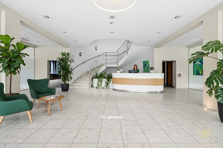 Die Büroflächen bieten die perfekte Infrastruktur mit Teppichböden, Fliesen und Laminat. Sofort bezugsfertig mit moderner Deckenbeleuchtung, neuer Küchenzeilen und Klimageräten. Tageslichtdurchflutet, offene Empfangshalle und Glaswände trennen die drei Büroetagen praktisch und modern.