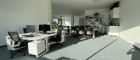 Die 180qm erstrecken sich über ein perfekt aufgeteiltes Büro mit Empfangsbereich, drei einzelnen Zimmern sowie einem großen, zusammenhängenden Raum. Teppichboden, Fensterfronten zu drei Seiten, Innenjalousien, äußerst schöne Deckenbeleuchtung und eine neue Einbauküche runden das Büro ab.