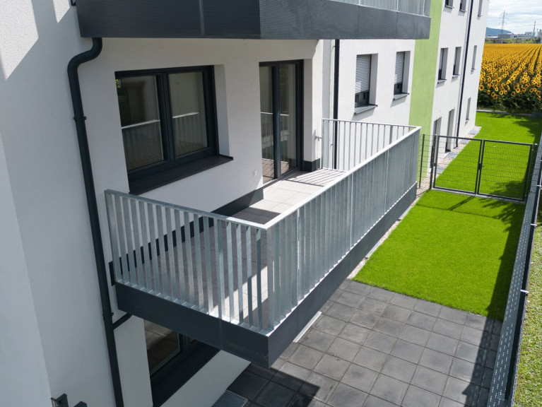 Die moderne Wohnanlage mit nur sechs Einheiten wurde 2025 in hochwertiger Ziegelmassivbauweise fertig gestellt. Ein Lift verbindet alle Ebenen barrierefrei vom Keller bis zu den Wohnungen. Beheizt wird die Anlage mittels zentraler Wärmepumpe mit Fußbodenheizung.
