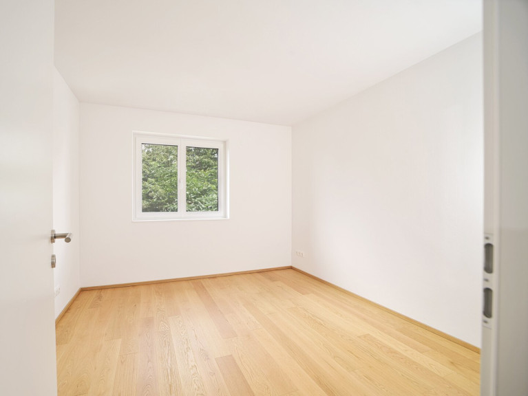 Die Wohnung ist mit Fußbodenheizung sowie einem Sat TV Anschluss ausgestattet. Vorraum, Bad und WC sind verfliest, die Zimmer verfügen über hochwertige Eichendielen. Alle Räume sind durch eigene Fenster mit außenliegenden Rollläden natürlich belüftet und belichtet. Durch die Ausrichtung nach Osten, Westen und Norden ist die Wohnung über den gesamten Tagesverlauf hinweg sehr gut mit Tageslicht versorgt und ermöglicht zudem ein effizientes Querlüften.