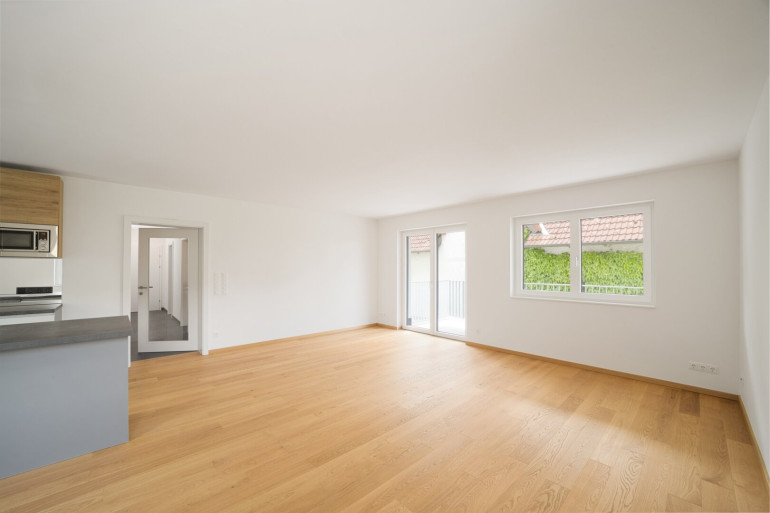Über das Stiegenhaus oder bequem mit dem Lift gelangt man in das 1. Obergeschoß und somit in Top 3 mit einer Wohnfläche von rund 83 m². Vom großzügigen, zentralen Vorraum aus sind sämtliche Räume separat begehbar. Auf der Westseite befinden sich zwei Zimmer, während Bad und WC auf der Ostseite angeordnet sind. Das Herzstück der Wohnung bildet das großzügige und helle Wohnzimmer mit integrierter Küche und direktem Zugang zum angeschlossenen Balkon. Durch die durchdachte Raumaufteilung ergeben sich vielseitige Nutzungsmöglichkeiten für Wohnen, Arbeiten oder Beherbergung.
