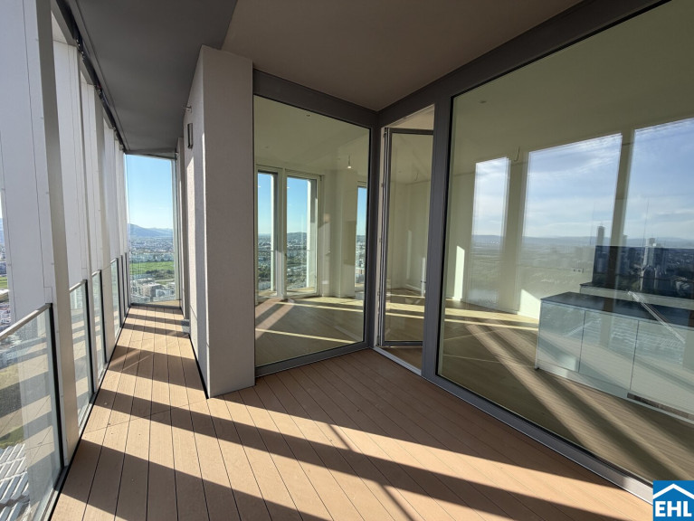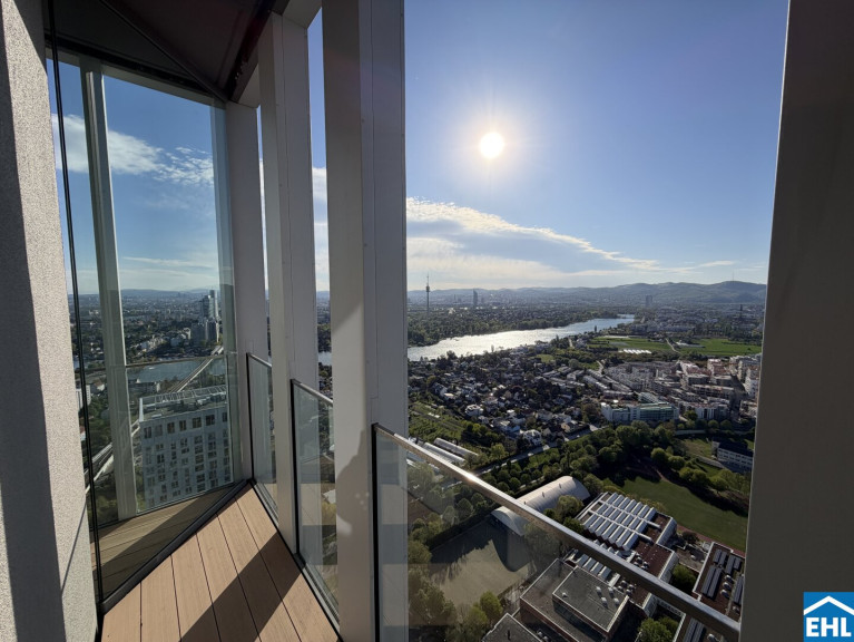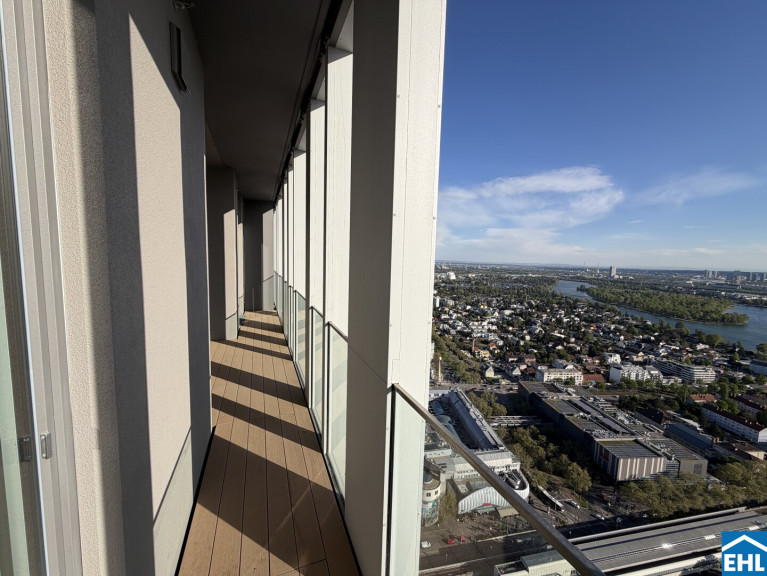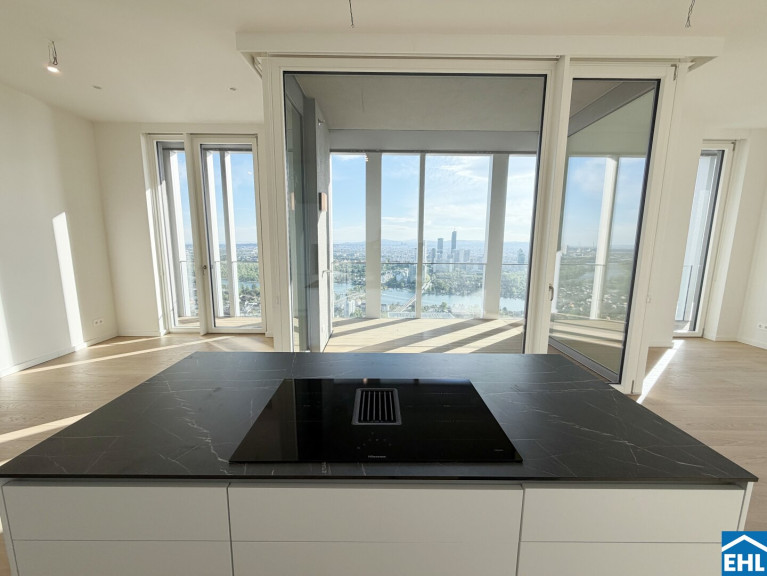 In einzigartiger Lage, direkt bei der U1-Station Kagran und vis-à-vis vom Donau Zentrum, entsteht ein exklusiver, ca. 155m hoher Wohnturm mit 45 Etagen. Die insgesamt 347 Mietwohnungen bieten einen vielfältigen Wohnungsmix: von smart geschnittenen 1,5-Zimmer-Apartments ab ca. 38 m² über komfortable 2-Zimmer-Wohnungen bis hin zu großzügigen 3- und 4-Zimmerwohnungen mit bis zu ca. 80 m².