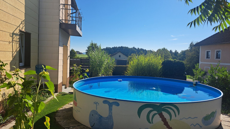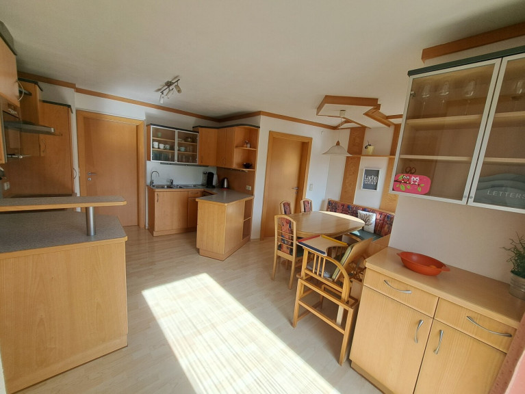 Die Ausstattung überzeugt mit einer funktionalen Einbauküche, einer zentralen Gasheizung sowie gemütlichen Kaminen, welche an kalten Tagen für wohlige Wärme sorgen. Zwei Balkone/Terrassen – einer nach Osten, der andere nach Westen ausgerichtet – laden zum Entspannen im Freien ein und bieten vielseitige Möglichkeiten für gemütliche Stunden mit Familie und Freunden.