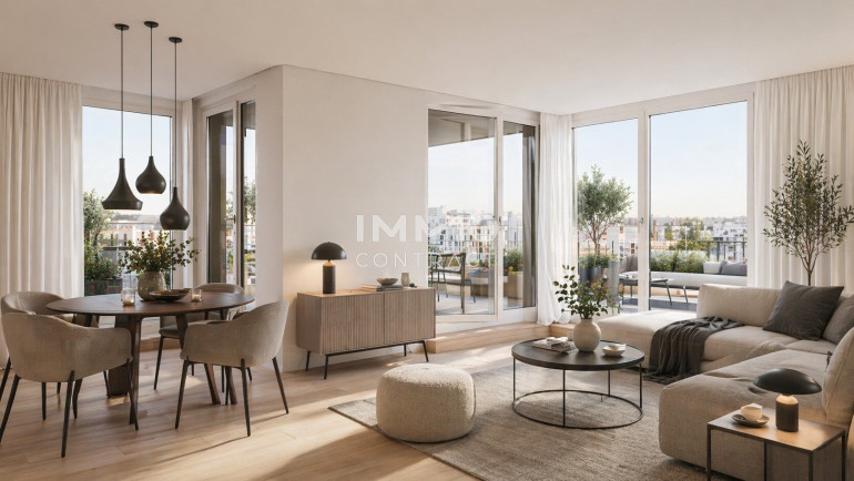 Das geräumige Badezimmer ist mit einer Dusche, einem Waschmaschinenanschluss sowie einem Handtuchtrockner ausgestattet und bietet damit hohen Wohnkomfort. Ein separates WC mit Handwaschbecken sorgt für zusätzlichen Komfort – besonders angenehm, wenn Gäste zu Besuch sind.