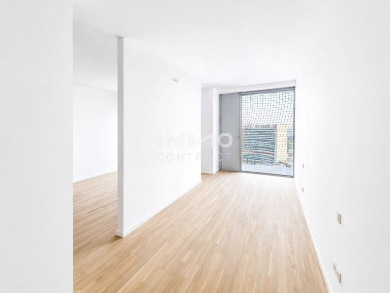 Dieses stilvolle Studio im DC2 Tower verbindet urbanen Komfort mit einem einzigartigen Ausblick auf das Vienna International Center (VIC). Die offene Aussicht auf das internationale Viertel Wiens verleiht der Wohnung ein kosmopolitisches Flair und macht sie zu einem besonderen Rückzugsort über der Stadt. Die ca. 10 m² große Loggia, die sich entlang der gesamten Wohnung erstreckt, erweitert den Wohnraum nach außen und wird zur privaten Aussichtsterrasse mit Blick auf eines der bedeutendsten internationalen Zentren Europas.