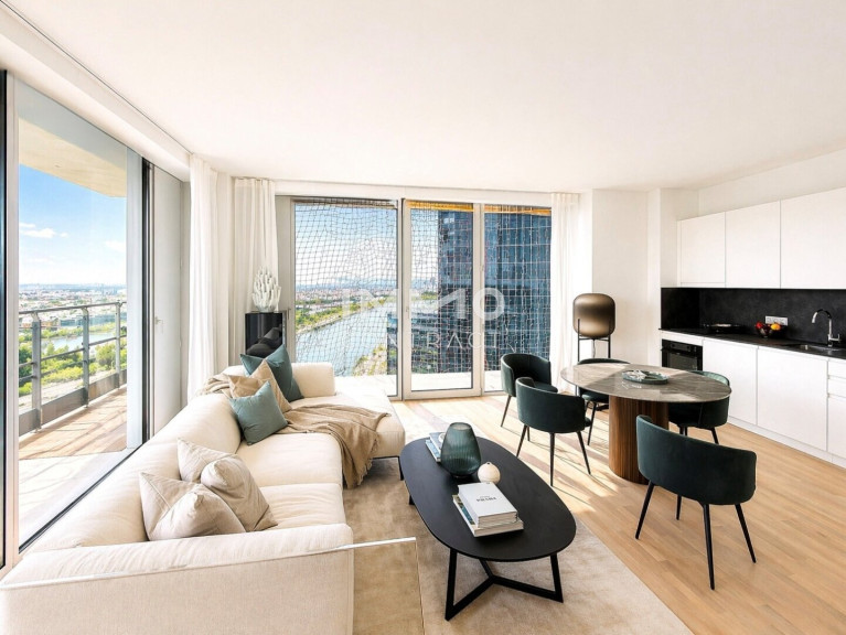 Im DC Tower 2 beginnt Wohnen dort, wo die Stadt in Weite übergeht. Hoch über Wien entfalten sich exklusive Wohnungen mit einem Panorama, das seinesgleichen sucht: Der Blick schweift über die Skyline, folgt der Donau – dem mächtigen „Megawasser“ der Stadt – und reicht bis weit über urbane und landschaftliche Horizonte hinaus. Hier wird Aussicht nicht zum Luxus, sondern zum täglichen Erlebnis.