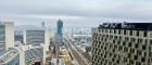 Dieses stilvolle Studio im DC2 Tower verbindet urbanen Komfort mit einem einzigartigen Ausblick auf das Vienna International Center (VIC). Die offene Aussicht auf das internationale Viertel Wiens verleiht der Wohnung ein kosmopolitisches Flair und macht sie zu einem besonderen Rückzugsort über der Stadt. Die ca. 10 m² große Loggia, die sich entlang der gesamten Wohnung erstreckt, erweitert den Wohnraum nach außen und wird zur privaten Aussichtsterrasse mit Blick auf eines der bedeutendsten internationalen Zentren Europas.