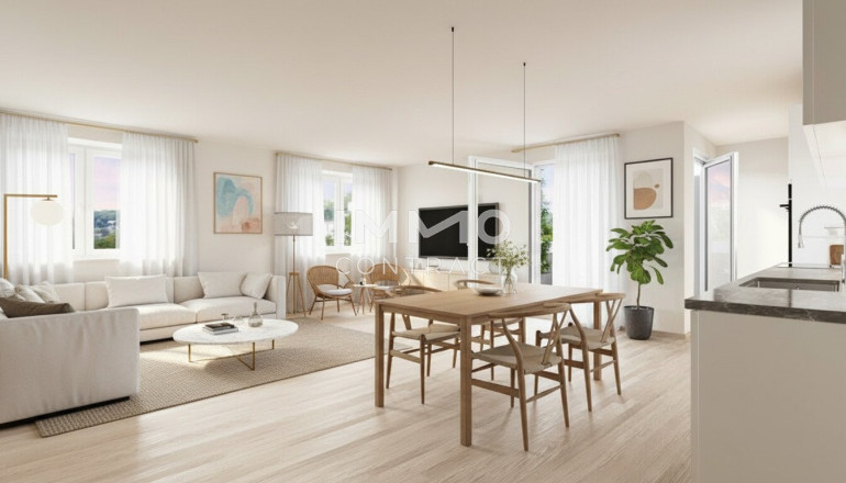 Der großzügige Wohn- und Essbereich bildet das Herzstück der Wohnung und bietet direkten Zugang zur Freifläche, die zum Entspannen und Verweilen einlädt. Großzügige Fensterflächen sorgen für eine angenehme Lichtstimmung und ein offenes Wohngefühl.
