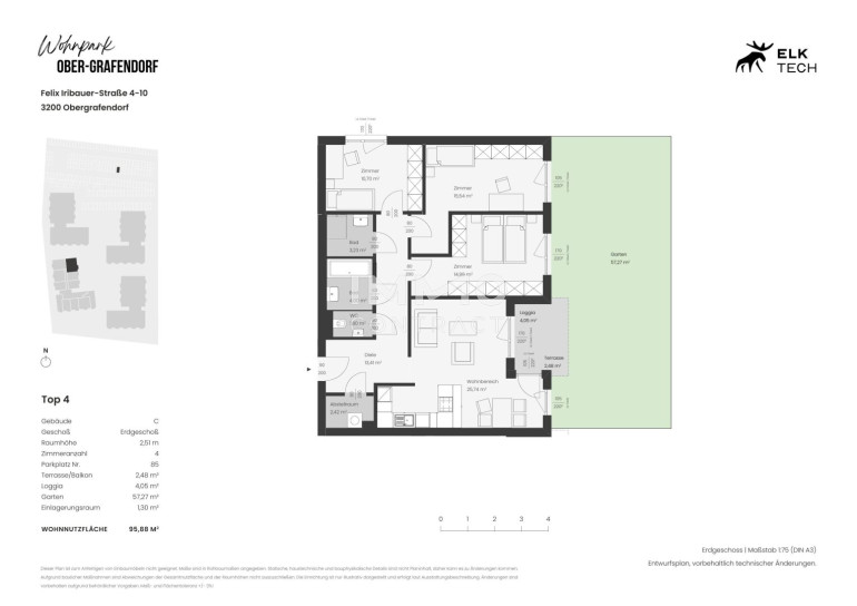 Der attraktive Wohnpark befindet sich im malerischen Ort Ober-Grafendorf, eingebettet in die reizvolle Landschaft Niederösterreichs. Die Region überzeugt durch ihre harmonische Mischung aus ländlicher Idylle und urbanem Komfort. Hier genießen Sie die Ruhe der Natur, ohne auf die Vorzüge städtischer Annehmlichkeiten verzichten zu müssen. In der unmittelbaren Umgebung finden Sie eine gute Infrastruktur mit Einkaufsmöglichkeiten, Restaurants und Cafés, die den täglichen Bedarf decken. Dank der Nähe zu Schulen und Kindergärten eignet sich die Lage ideal für Familien. Darüber hinaus besticht der Ort durch seine hervorragenden Verkehrsanbindungen an die umliegenden Städte, was Pendlern ein entspanntes Erreichen ihres Arbeitsplatzes ermöglicht. Freizeitliebhaber schätzen die zahlreichen Naherholungsgebiete insbesondere den Ebersdorfer See, die zu ausgedehnten Spaziergängen und sportlichen Aktivitäten einladen. Kulturfreunde kommen ebenfalls auf ihre Kosten, da die Region reich an kulturellen Veranstaltungen und historischen Sehenswürdigkeiten ist.