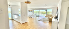 Die exklusive Küche ist mit modernen Elektrogeräten und einer Arbeitsplatte aus Naturstein ausgestattet. Die Fußböden sind mit Massivholzparkett und Steinzeugfliesen von höchster Qualität ausgestattet. Die Beheizung erfolgt zentral über eine Fußbodenheizung, die mit Fernwärme betrieben wird.