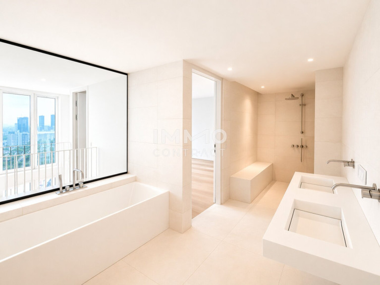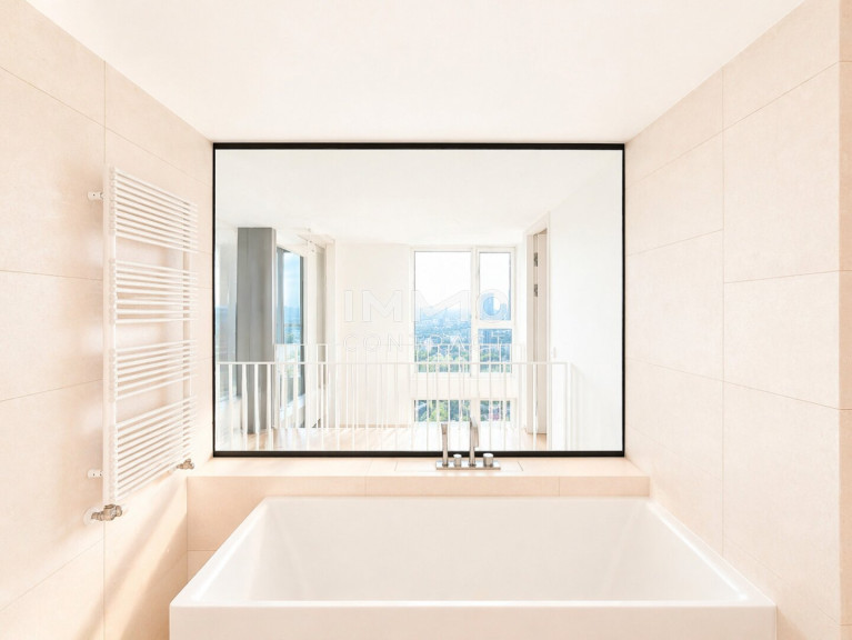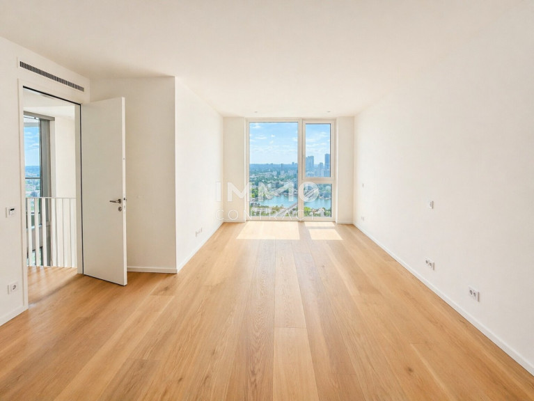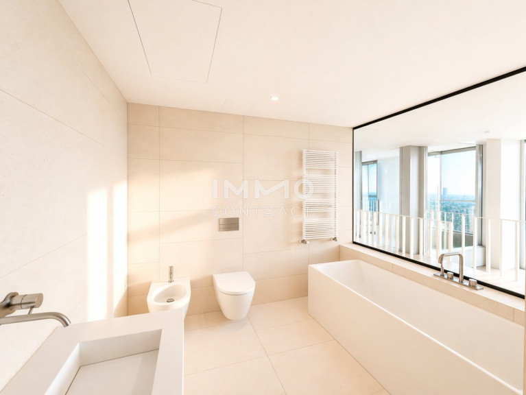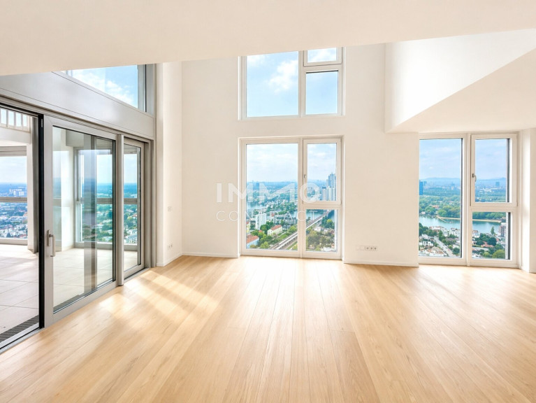Im Wohnturm befinden sich rund 300 Wohnungen in unterschiedlichen Größen, aufgeteilt in vier Ausstattungskategorien. Die wenigen noch verfügbaren Einheiten verfügen über 2-4 Zimmer und sind zwischen ca. 46 m² - ca. 215 m² groß. Sämtliche der verfügbaren Eigentumswohnungen befinden sich im 22. – 32. Stockwerk und überzeugen mit der hochwertigen Ausstattungslinie „Sky Living“ (22. - 30. OG), wobei sich die Penthouse-Etagen (31. - 32. OG) nochmals in Ihrer Beschaffenheit abheben.