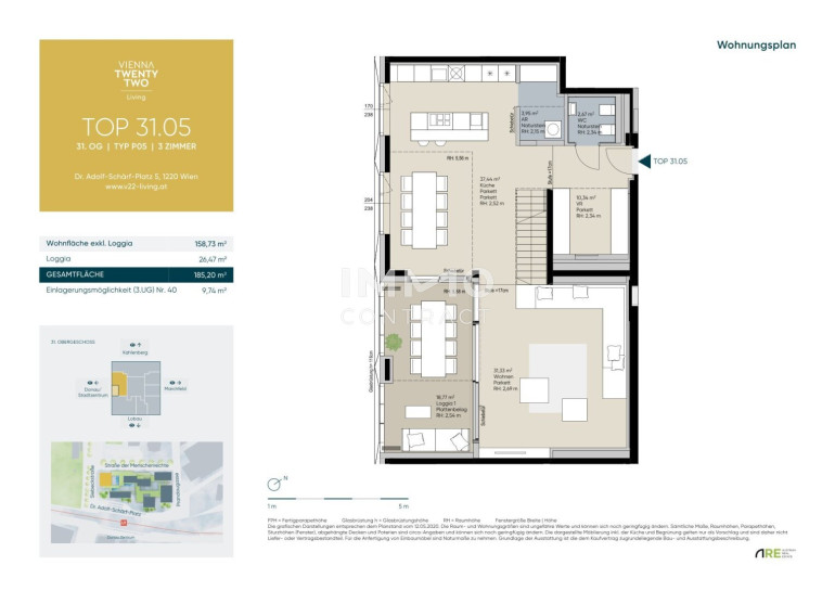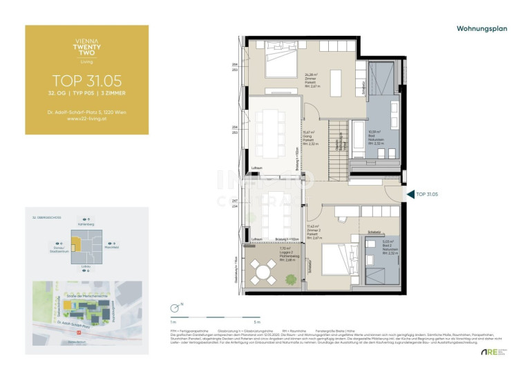 Der 22. Bezirk zählt zu den dynamischsten und aufstrebendsten Stadtteilen Wiens. Die Lage von VIENNA TWENTYTWO Living bietet die perfekte Mischung aus urbanem Lebensstil und Naturnähe. Die Alte Donau, sowie die Donauinsel befinden sich in unmittelbarer Nähe und bieten zahlreiche Freizeitmöglichkeiten wie Sport, Spazierengehen und Entspannen im Grünen. Das Projekt ist hervorragend an das öffentliche Verkehrsnetz angebunden. Die unmittelbar fußläufig erreichbare U-Bahn-Linie U1 sowie zahlreichen Buslinien ermöglichen eine direkte Verbindung ins Stadtzentrum und andere wichtige Bezirke. Auch die Infrastruktur in der Umgebung ist sehr gut: Einkaufsmöglichkeiten (Donauzentrum), Schulen, Kindergärten und medizinische Einrichtungen sind in der Nähe, was den Alltag der Bewohner erheblich erleichtert.