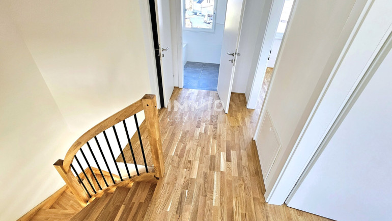 Über eine offene Holztreppe gelangen Sie ins 1. Obergeschoß mit 3 großzügigen Schlafzimmern, geräumigem Bad mit Badewanne, Dusche, Doppelwaschbecken und Fenster, und einem separaten WC.