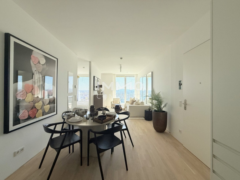 Dieses stilvolle 2-Zimmer-Apartment im DC2 Tower verbindet urbanen Lifestyle mit beeindruckender Weitsicht. Die Südausrichtung und der freie Blick über die gesamte Wiener Innenstadt sorgen den ganzen Tag über für Licht, Weite und ein außergewöhnliches Wohngefühl.