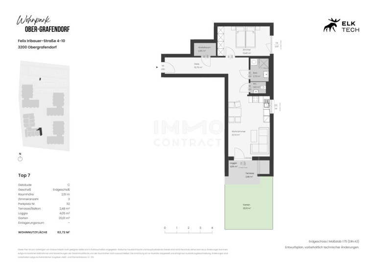 Der attraktive Wohnpark befindet sich im malerischen Ort Ober-Grafendorf, eingebettet in die reizvolle Landschaft Niederösterreichs. Die Region überzeugt durch ihre harmonische Mischung aus ländlicher Idylle und urbanem Komfort. Hier genießen Sie die Ruhe der Natur, ohne auf die Vorzüge städtischer Annehmlichkeiten verzichten zu müssen. In der unmittelbaren Umgebung finden Sie eine gute Infrastruktur mit Einkaufsmöglichkeiten, Restaurants und Cafés, die den täglichen Bedarf decken. Dank der Nähe zu Schulen und Kindergärten eignet sich die Lage ideal für Familien. Darüber hinaus besticht der Ort durch seine hervorragenden Verkehrsanbindungen an die umliegenden Städte, was Pendlern ein entspanntes Erreichen ihres Arbeitsplatzes ermöglicht. Freizeitliebhaber schätzen die zahlreichen Naherholungsgebiete insbesondere den Ebersdorfer See, die zu ausgedehnten Spaziergängen und sportlichen Aktivitäten einladen. Kulturfreunde kommen ebenfalls auf ihre Kosten, da die Region reich an kulturellen Veranstaltungen und historischen Sehenswürdigkeiten ist.