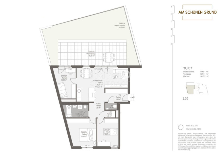 Die Wohnungen und Häuser zeichnen sich durch durchdachte Grundrisse, lichtdurchflutete Räume und großzügige Freiflächen aus. Hier finden Sie den perfekten Raum, um Ihre individuellen Wohnträume zu verwirklichen. Abgerundet wird das Angebot durch eine komfortable Tiefgarage im Gebäude, die den Alltag zusätzlich erleichtert. Ein Stellplatz kann optional erworben werden.