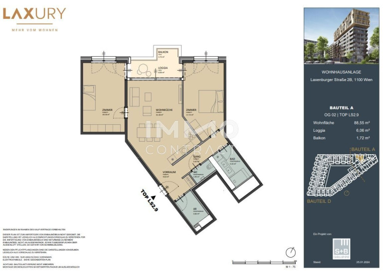 Embedded in an urban environment, the address benefits from perfect infrastructure and transport connections: the main train station (U1, tram lines 18, O, D, buses 13A, 69A, suburban trains, regional buses, long-distance trains) with its Hauptbahnhof-City including attractive shops, restaurants, and a supermarket open on Sundays, is within walking distance, as are doctors' offices, kindergartens, and schools. Favoritenstraße, a popular Viennese shopping street with numerous shops, markets, and restaurants, as well as Belvedere Palace, can be reached in no time. Vienna’s city center is only a few minutes away with the U1 subway, and trains take you directly to the airport and towards Salzburg, Graz, Bratislava, or Budapest without changing trains. Nearby motorway access to the A4 and A23 allows you to leave the city quickly. Розташування в урбаністичному середовищі забезпечує ідеальну інфраструктуру та транспортне сполучення: Головний вокзал (U1, трамваї 18, O, D, автобуси 13A, 69A, міська електричка, регіональні автобуси, поїзди далекого сполучення) з торговим центром Hauptbahnhof-City, сучасними магазинами, ресторанами та супермаркетом, що працює навіть у неділю, знаходяться у пішій доступності. Популярна вулиця Favoritenstraße з численними магазинами, ринками й закладами харчування, а також палац Бельведер досяжні за лічені хвилини. До центру Відня можна дістатися за кілька хвилин на метро U1. Потяги відправляються напряму до аеропорту, а також у напрямку Зальцбурга, Граца, Братислави та Будапешта. Через найближчі виїзди на автостради A4 та A23 легко виїхати з міста.