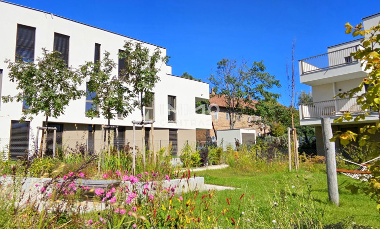 Die Wohnungen sind in kleineren familiären Häusern untergebracht, die in einer weitläufigen Anlage ohne Autoverkehr durch Grünflächen miteinander verbunden sind und so eine ruhige, familienfreundliche und parkähnliche Atmosphäre geschaffen wurde.