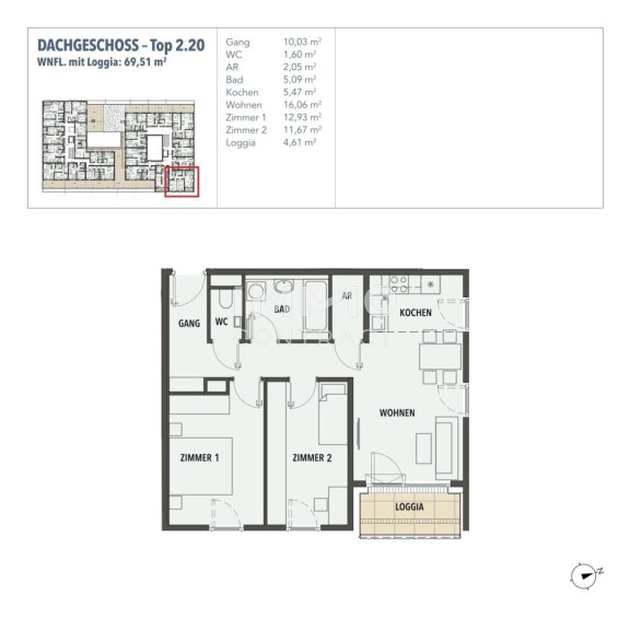Willkommen in Ihrem neuem zu Hause auf 64,9 Quadratmeter Wohnfläche, verteilt auf 3 Zimmer. Dazu ein praktischer Abstellraum, ein separates WC und eine großzügige Loggia von 4,61 Quadratmeter – ideal für Entspannung im Freien. Die helle, und gut durchdachte Raumaufteilung bietet komfortables Wohnen mit einem modernen Lebensgefühl. Perfekt für jeden der gerne nahe an der Natur ist aber die Annehmlichkeiten einer Großstadt schätzt.