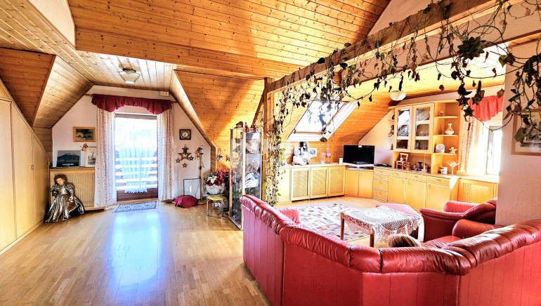 Auf einem 911 m2 großen Hanggrundstück ist es mit einer Wohnfläche von ca. 200 m2 und Keller ein wahres Raumwunder.