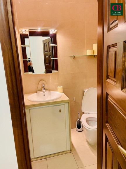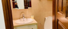 Küche, Bad und Waschküche aus hellem Natursteinplatten sind vorhanden, wenn auch etwas veraltet. Einbaukästen aus Vollholz und maßangefertigte Marmortische, passen sich den großzügigen Räumen perfekt an.