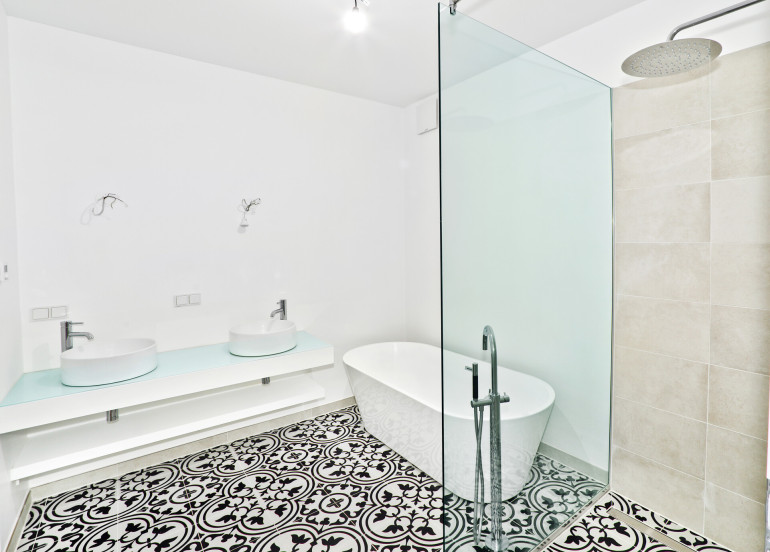 Parkett, Fußbodenheizung, Badewanne, Dusche