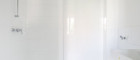 - Badezimmer mit Dusche, Waschbecken und Waschmaschinenanschluss