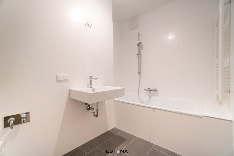 Fliesen, Parkett, Fußbodenheizung, Wohnküche / offene Küche, Personenaufzug, Ostbalkon, Badewanne, Parkplatz