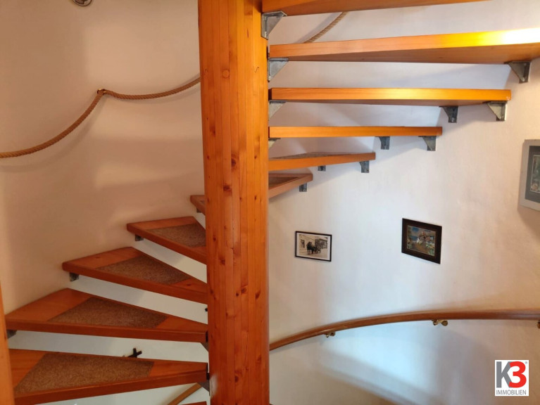 Über eine sehr hübsche Wendeltreppe gelangt man nach oben zu weiteren 2 Schlafzimmern und einem Badezimmer mit WC.